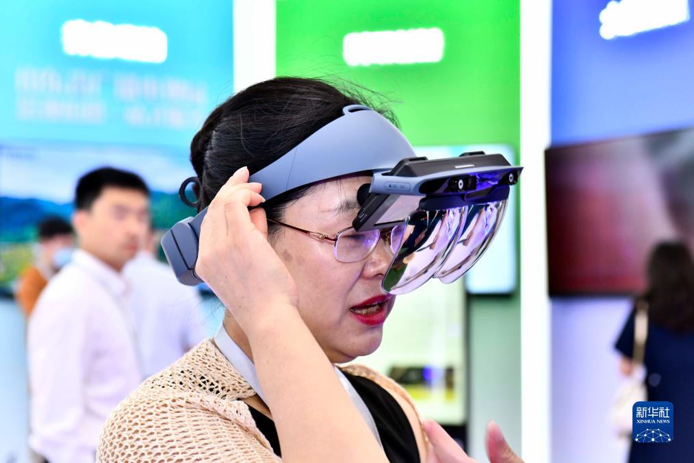 8月24日,在青岛召开的2023年中国网络视听精品创作峰会上,与会嘉宾在智能视听沉浸式体验展区体验新技术新应用。