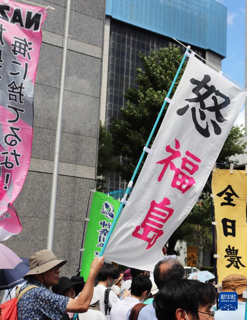 8月24日,日本民众在东京电力公司总部前集会,抗议日本政府和东电公司无视民意启动核污染水排海。