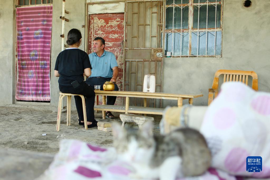 8月17日,尔肯·热衣木在棉田忙碌间隙,坐下和女儿聊天。