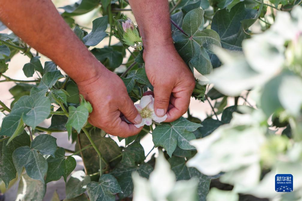 8月17日,尔肯·热衣木在棉田中检查棉桃病虫害情况,以便及时打药防治。