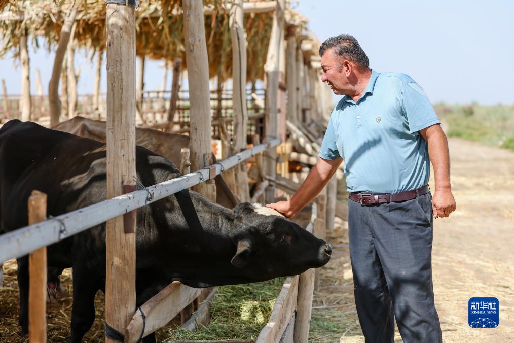 8月17日,尔肯·热衣木在牛棚查看刚生产不久的母牛恢复情况。目前,只有刚生产不久的牛羊在家中,方便喂养小羊羔和小牛犊,其他的都在草场。