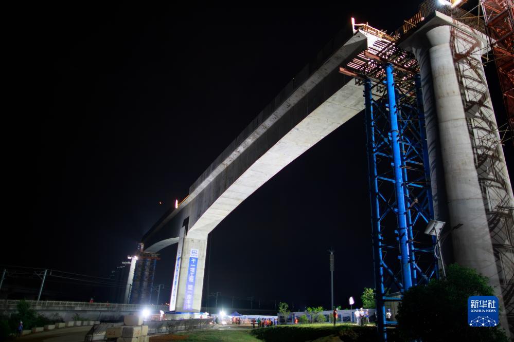 当日,由中铁八局承建的贵南高铁引入贵阳枢纽铁路尖坡寨特大桥在贵州省贵安新区成功转体。据了解,此次转体的混凝土箱梁长约160米,重达7500吨,转体角度约为41度,成功跨越已开通运营的沪昆高铁既有线。
