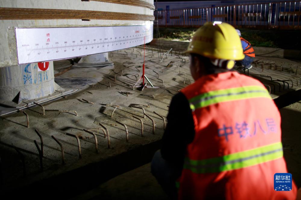 8月25日,工作人员在监测尖坡寨特大桥转体角度。
