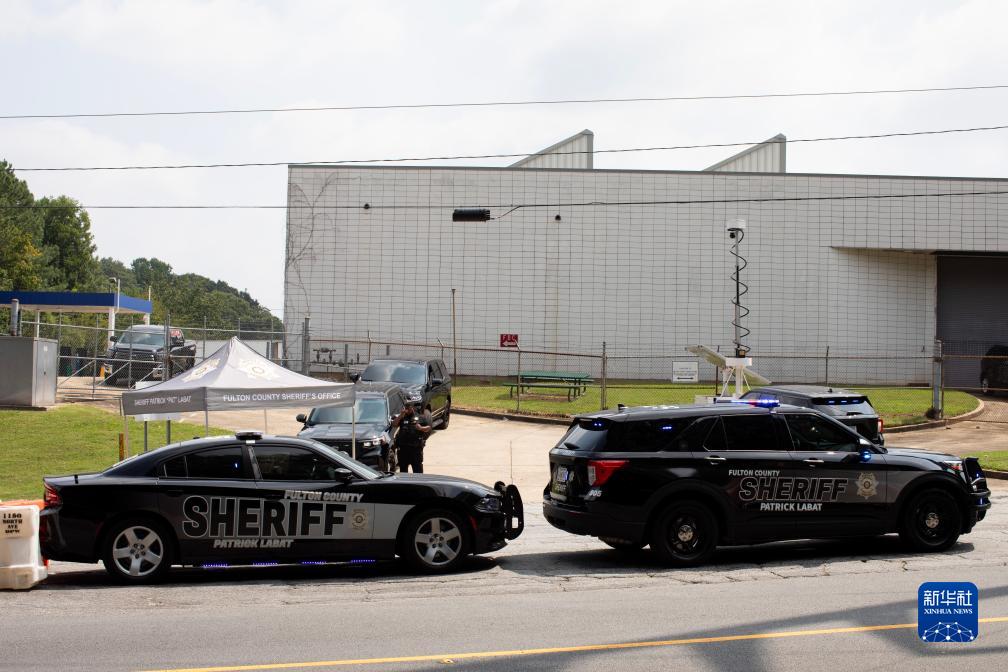 8月24日,警察在美国佐治亚州亚特兰大市富尔顿县拘留所外警戒。