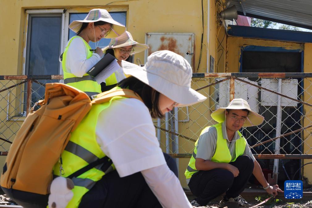 在黑龙江省双鸭山市集贤县的铁路沿线,部分勘察班组成员在铁路既有线开展测量作业(8月24日摄)。