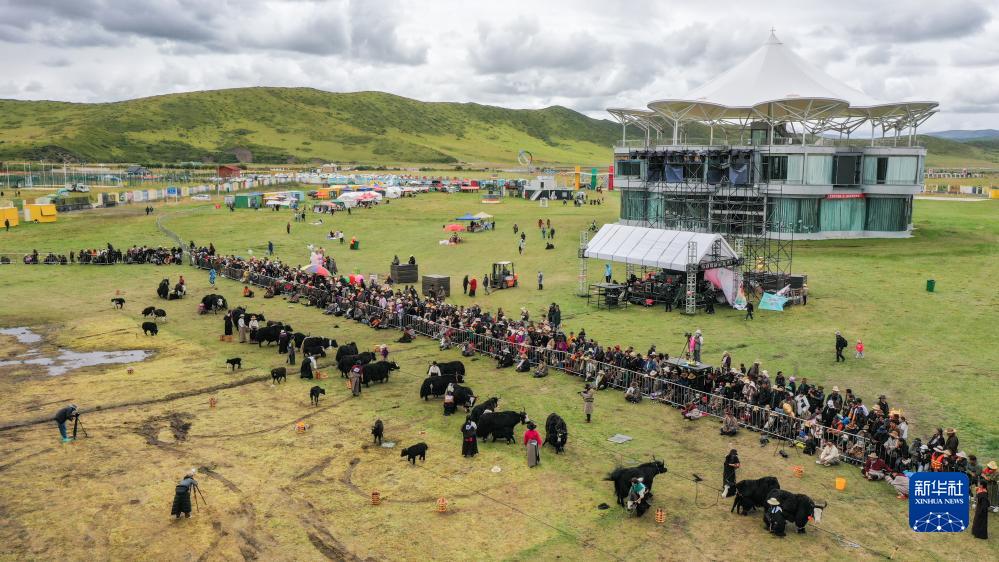 这是8月25日在四川省阿坝藏族羌族自治州红原县雅克音乐牧场拍摄的牦牛产奶量比赛现场(无人机照片)。