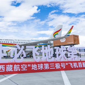 8月25日,以“地球第三极号”冠名的西藏航空TV9851次航班从成都飞抵拉萨贡嘎国际机场。此活动旨在推动西藏特色产业发展,同时吸引更多人走进西藏、发展西藏、宣传西藏。新华社发(丁增尼达摄)