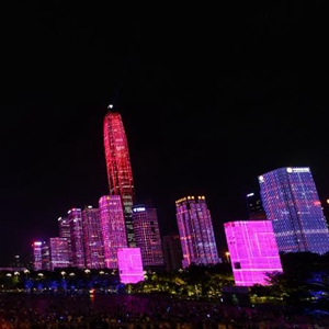 8月25日晚,深圳市中心区灯光表演庆祝特区成立43周年。