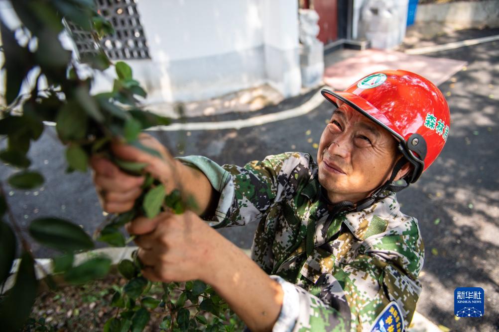 8月24日,在浏阳市金刚镇丹桂村,黄蔚谷处理缠绕在古树上的藤蔓。
