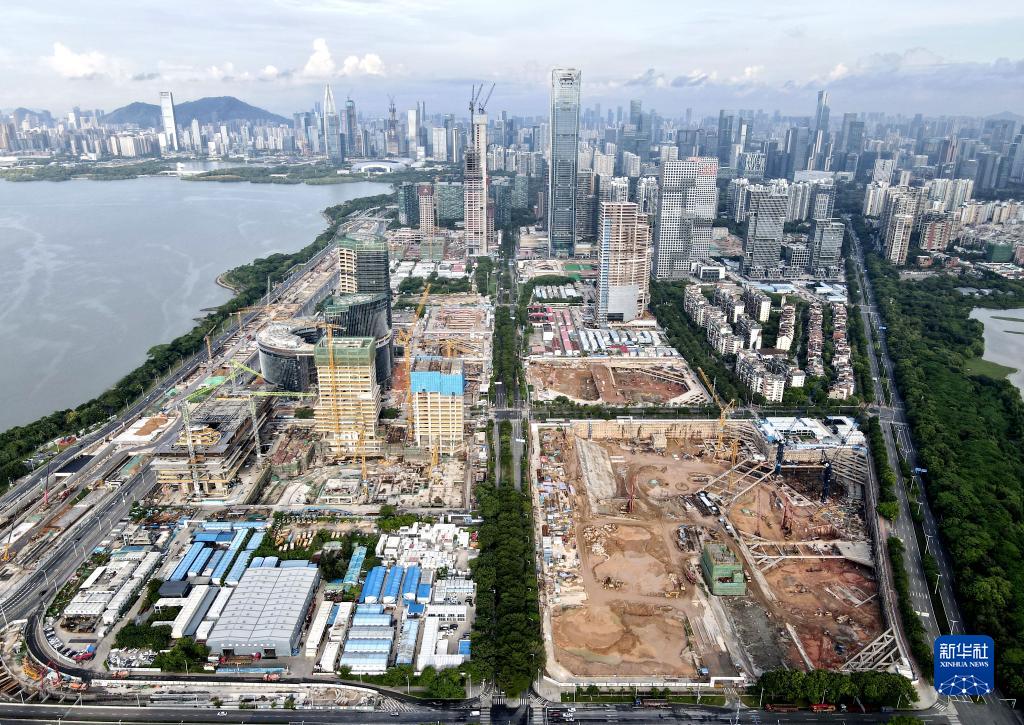 深圳湾超级总部基地建设现场(8月26日摄)。