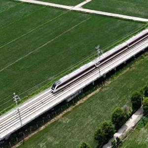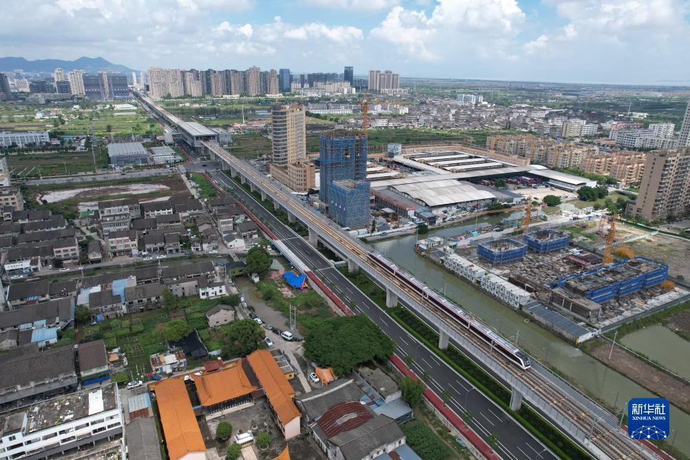 8月26日,温州轨道交通S2线列车行驶在瑞安市路段(无人机照片)。