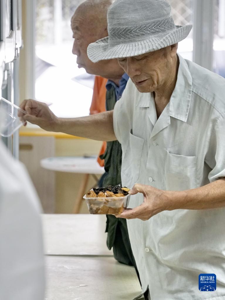 8月26日,十里堡社区的老年人在老年餐厅购买午饭。