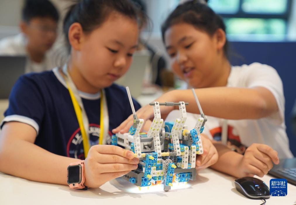 8月26日,两名参赛选手在调试机器人。