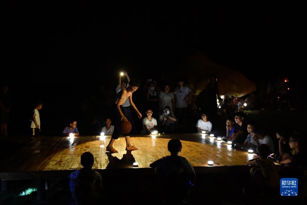 8月20日,在2023大元社乡村青少年艺术节中,小朋友用篮球表演讲述自己的成长故事。