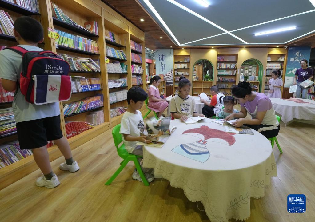 8月26日,家长带着孩子在秦皇岛市海港区青年书店阅读区阅读。