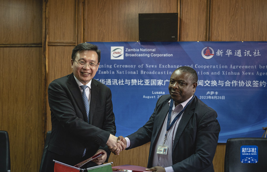 新华通讯社25日在赞比亚首都卢萨卡与赞比亚国家通讯社、赞比亚国家广播公司等主流媒体签署协议,双方将进一步加强在新闻信息交换、人员交流、记者培训等方面合作。赞比亚主流媒体表示,希望和新华社不断提升合作水平,丰富合作形式与内容,共同开拓双边和多边机制框架下合作新局面。同日,新华社向赞比亚主流媒体捐赠了办公设备。