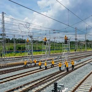 当日,中国铁路南宁局集团有限公司南宁供电段的接触网工对南宁第二动车所存车线内26条股道中达到检调标准的股道进行检查,为即将全线开通的贵南高铁做准备。