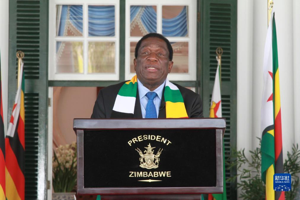 8月27日,在津巴布韦哈拉雷,姆南加古瓦被宣布获得连任后向媒体发表讲话。