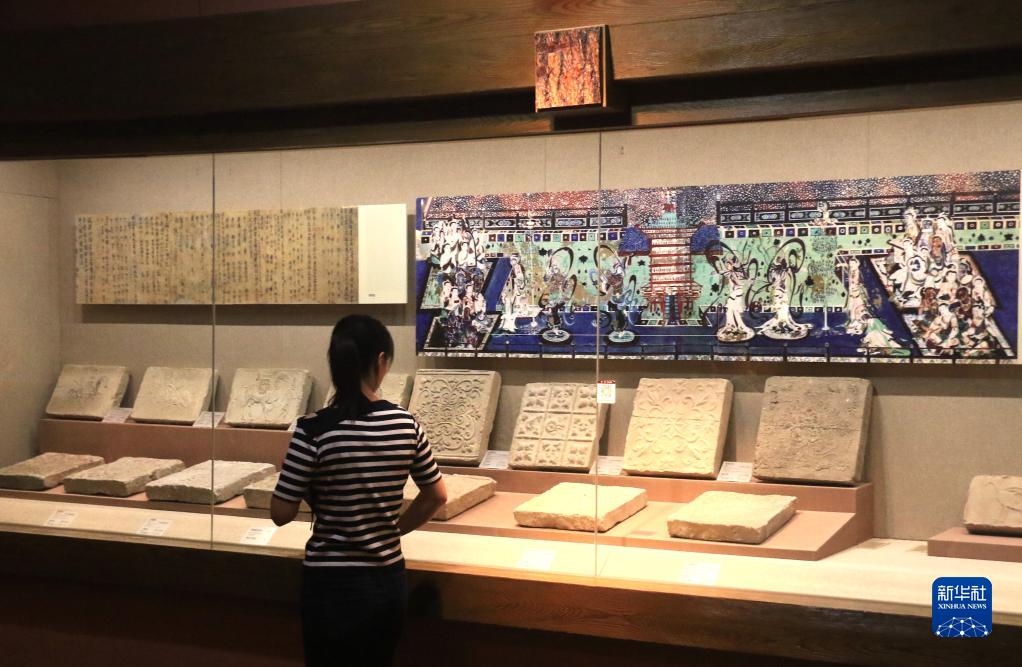 8月27日,游客在甘肃省敦煌市博物馆参观。