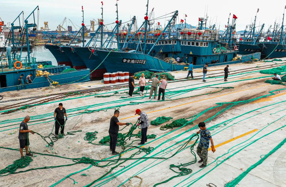 8月26日,演员在北戴河碧螺塔酒吧公园为游客表演大型实景秀《浪淘沙·北戴河》。