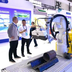 这是在2023绿色低碳高质量发展大会装备展上展出的工业机器人设备(8月29日摄)。