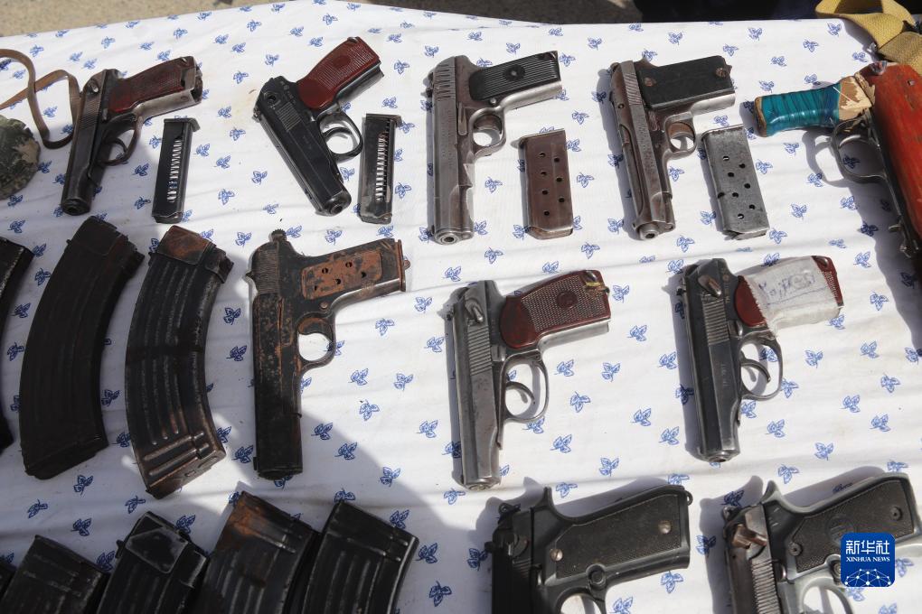 这是8月29日在阿富汗巴尔赫省拍摄的被阿富汗安全部队收缴的武器。