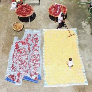 初秋,各地农民抓紧晴好天气晾晒作物,处处呈现出喜人的晒秋场景。
