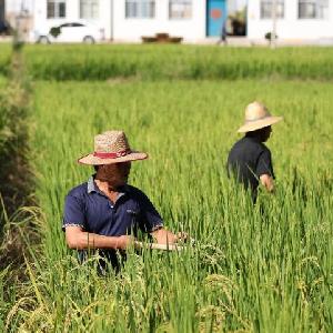 8月29日,河北省迁安市大崔庄镇楼子山村农民在水稻田内除草。
