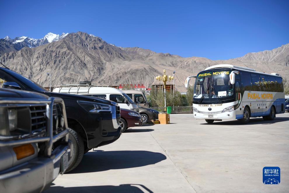 来自巴基斯坦的客车驶入新疆红其拉甫口岸(8月29日摄)。