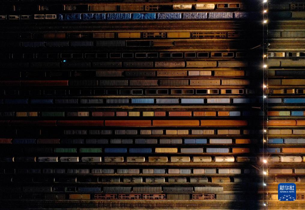 8月29日晚拍摄的投光灯照耀下的郑州北站编组场(无人机照片)。
