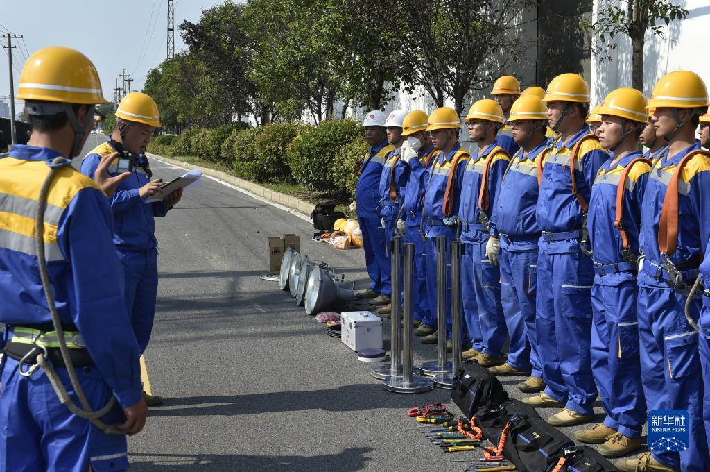8月29日,在郑州北站编组场,中国铁路郑州局集团有限公司郑州供电段工作人员在检修投光灯前进行准备工作。