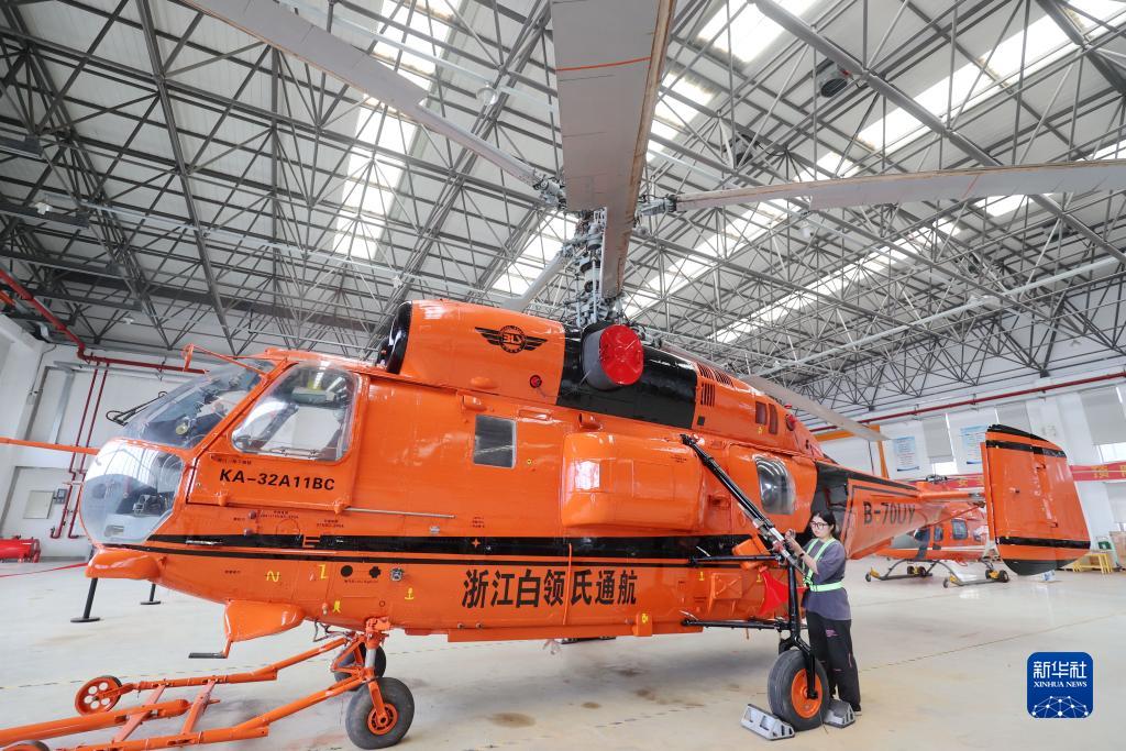 8月30日,在德清县通航智造小镇莫干山机场,工作人员对飞机进行航前检查。
