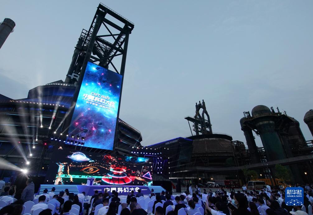 这是5月29日在北京市石景山区首钢园拍摄的2023中国科幻大会开幕式现场。