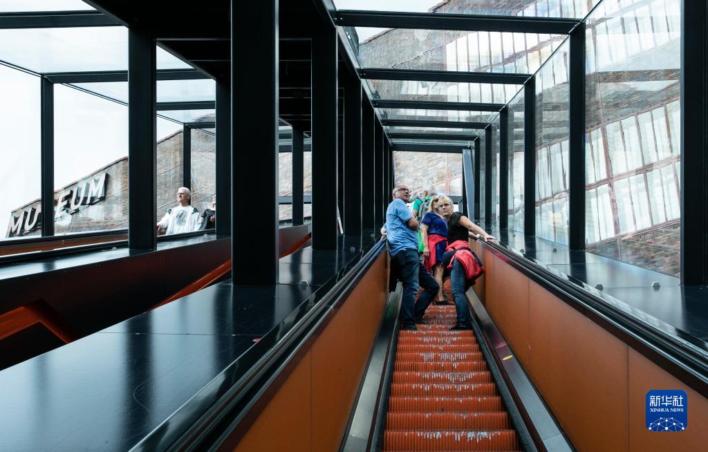 8月16日,在德国埃森的关税同盟煤矿工业区,人们乘坐电梯进入鲁尔博物馆。该电梯由原工业区的传送带改建而成。