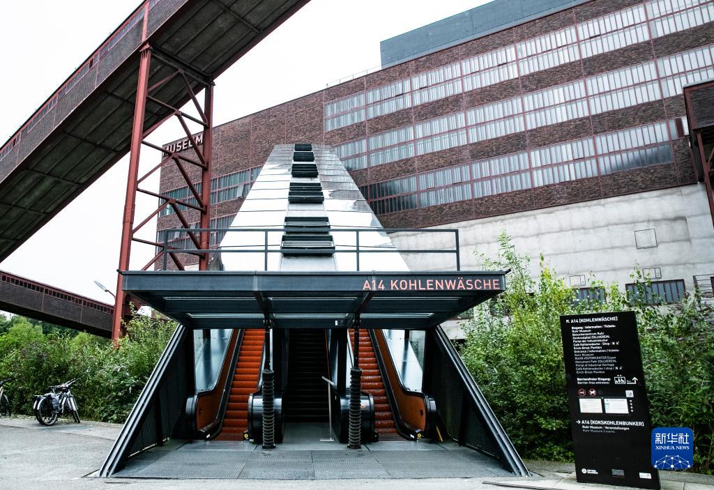 这是8月16日在德国埃森的关税同盟煤矿工业区拍摄的鲁尔博物馆电梯。该电梯由原工业区的传送带改建而成。