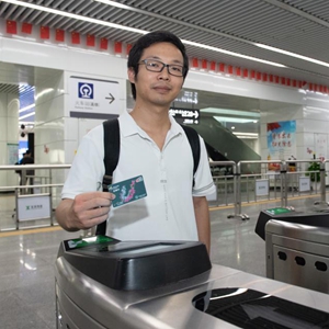 8月30日,在深圳福田站地铁闸机入口,用户持深港互通行卡准备刷卡。