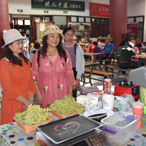 8月30日,游客在位于新疆吐鲁番市的坎儿井乐园景区拍照。