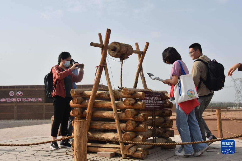 8月30日,游客在位于新疆吐鲁番市的交河驿·坎儿井源景区参观拍照。