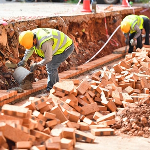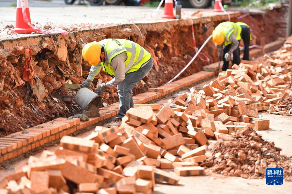 8月30日,在湖南省岳阳市平江县金盾小区,工人在砌墙。