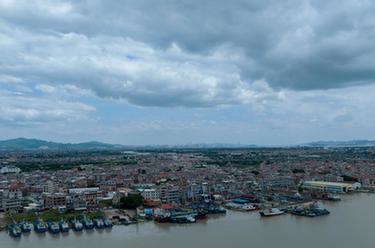 8月30日,“中外运海口”轮缓缓驶离山东港口青岛港(无人机照片)。