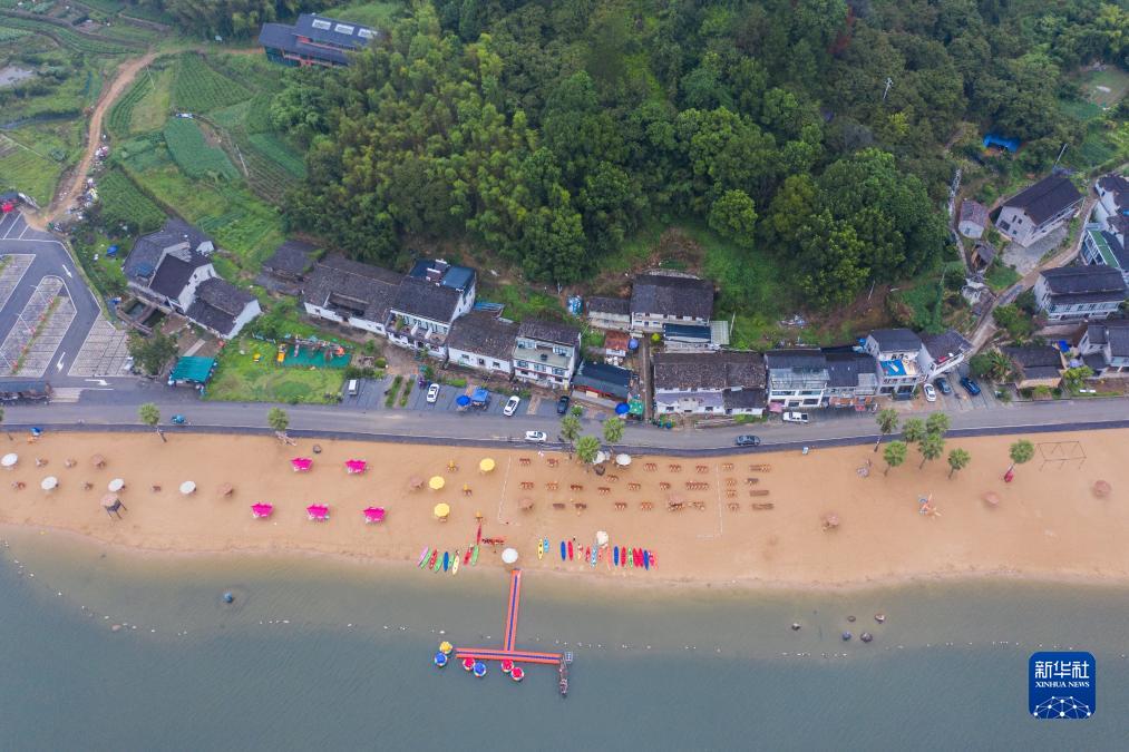 8月30日拍摄的长汀村的长汀沙滩景区(无人机照片)。云和县石塘镇长汀村位于浙江省第三大人工湖——云和湖畔、“十里云河”美丽乡村风景线的中心路段。