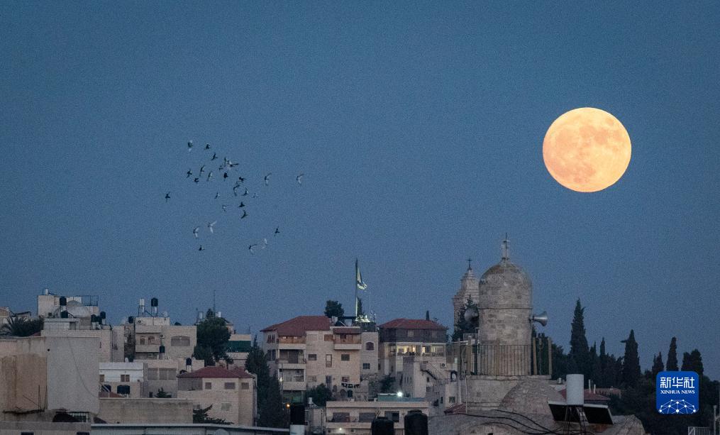 这是8月30日在耶路撒冷拍摄的“超级月亮”。