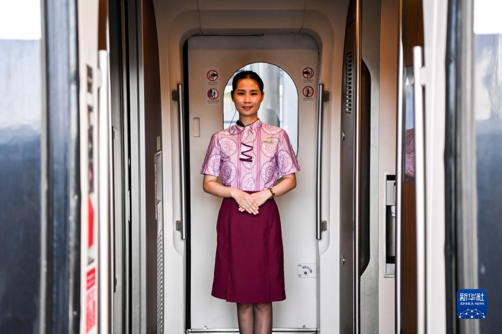 8月31日,工作人员在由南宁东开往贵阳北的G4308次列车上等候乘客上车。