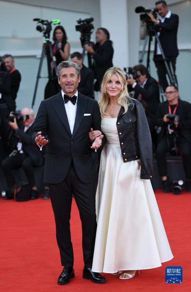8月31日,在意大利威尼斯,电影《法拉利》演员帕特里克·登普西携妻子亮相首映式红毯。