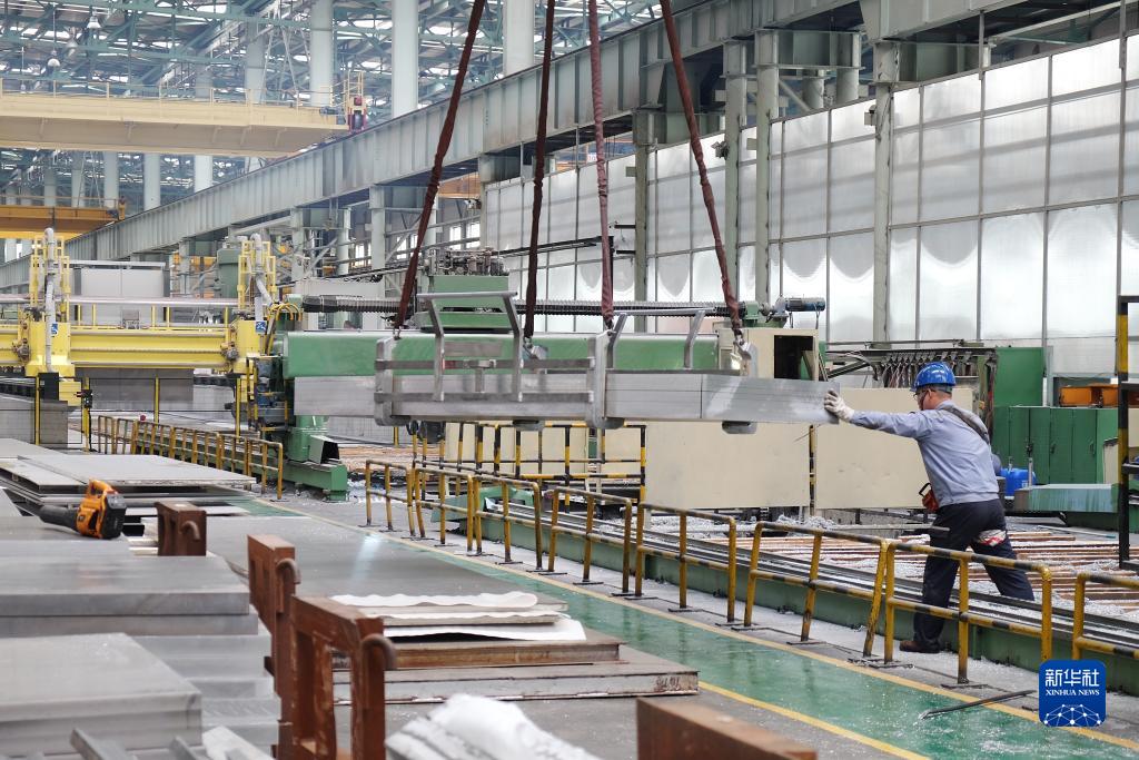 8月31日,工人在东北轻合金有限责任公司中厚板厂将物料送往下道工序。东轻公司在高精尖先进铝加工关键技术方面处于领先地位,被誉为“中国铝镁加工业摇篮”。