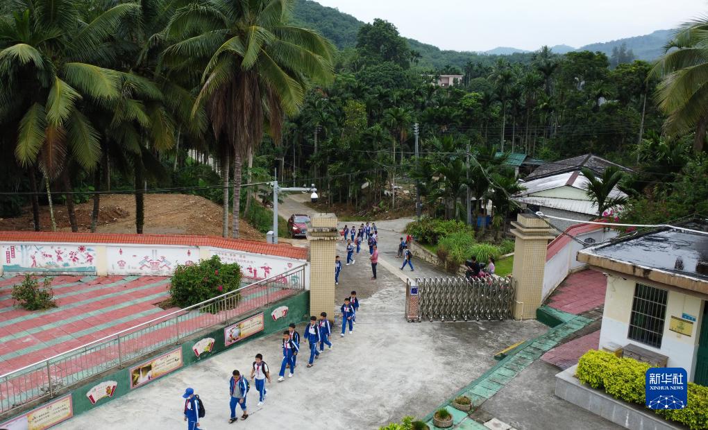 9月1日,海南省琼中黎族苗族自治县高田小学学生走入校园开启新学期(无人机照片)。