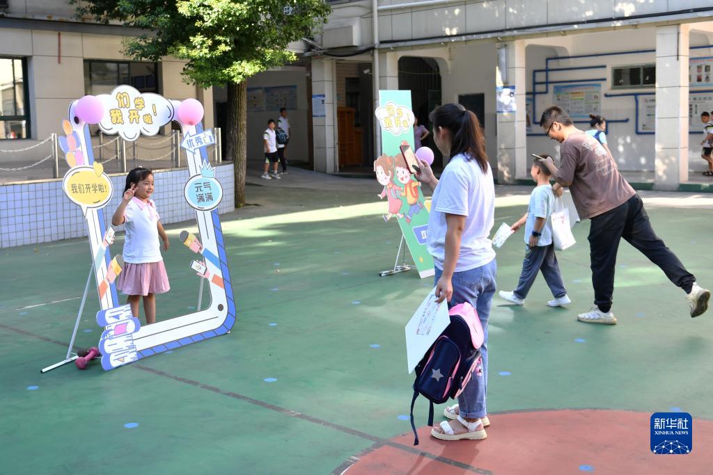 9月1日,湖南省长沙市天心区沙湖桥小学一年级新生在开学迎新活动中。