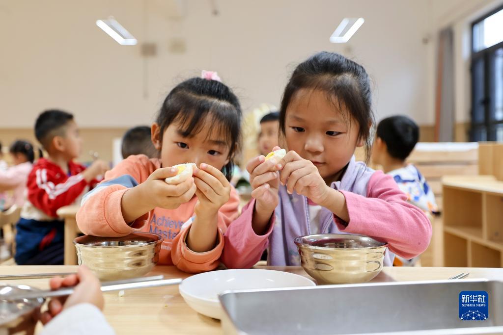 9月1日,在云南省昆明市西山区前卫幼儿园,小朋友们在吃早餐。