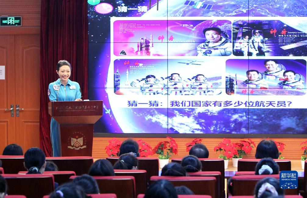 9月1日,在北京市北师大实验华夏女中开学典礼上,航天员教官王一在讲授开学一课,勉励同学们树立航天梦。
