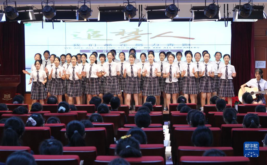9月1日,北京市北师大实验华夏女中的学生在开学典礼上合唱《我们都是追梦人》。